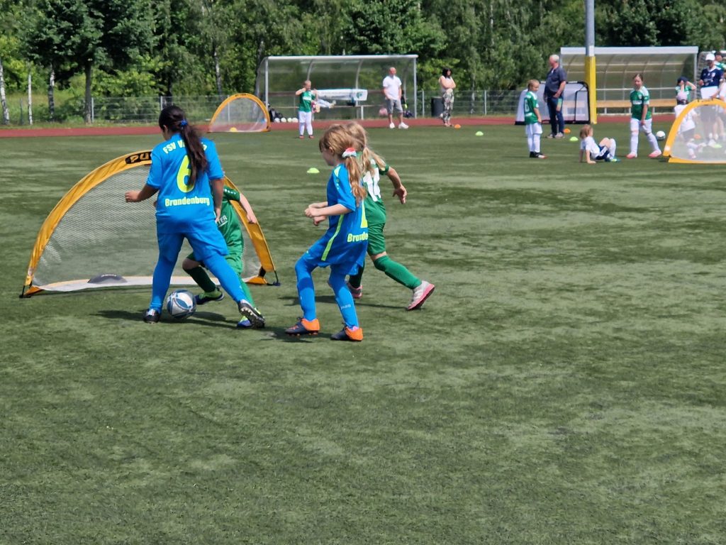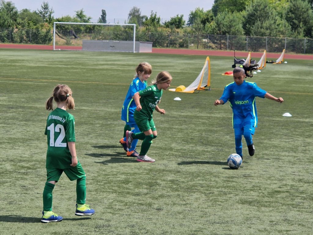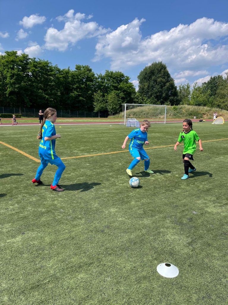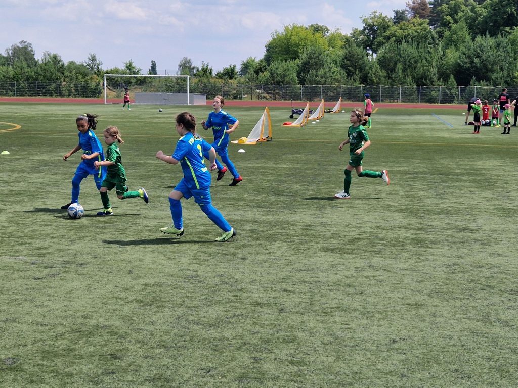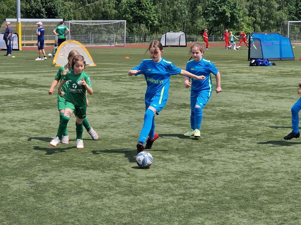 Am Samstag nahmen die jüngeren Viktoria-Mädels (8-10 Jahre) an ihrem 2. Fußball-3 Turnier teil. Es wurde drei gegen drei auf jeweils zwei Tore gespielt. Sieben Spiele a 7 Minuten mit 3 Minuten Pause dazwischen. Zahlten die Mädels im ersten Turnier noch viel Lehrgeld, lief es dieses Mal schon deutlich runder. Der Start war noch etwas holprig mit einem Remis und einer Niederlage. Danach fanden sie besser ins Spiel. Die folgenden 5 Spiele gewannen die Mädchen. Alle Spielerinnen konnten sich in die Torschützenliste eintragen. Im Vordergrund stand aber der Spaß am Fußball und der Austausch mit den anderen Teams. Trainer Andreas Ziehm war sehr stolz auf seine Mädels.
