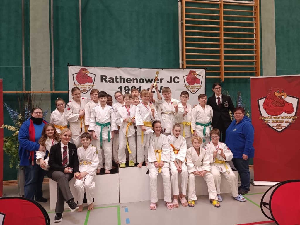 Am Samstag kämpften dann 170 Judoka aus 20 Vereinen und 3 verschiedenen Bundesländern (Brandenburg, Berlin und Sachsen-Anhalt) um die Medaillen und Mannschaftspokale. Unsere 20 Sportler überzeugen mit ihren super Leistungen und tollen spannenden Kämpfen. Über Gold freuten sich in der U11 Adama Schröder bis 36 kg, Jannes Stübe bis 31kg, Tristan Schober bis 28kg, Felix Breiter über 46kg und in der U13 Lena Scharlach über 57kg. Silber holten sich in der U11 Maria Stiehl bis 36kg, Anna Lena Liese über 48kg, Jannes Brüggemann bis 37kg, in der U13 Alisha Furch über 57kg und Sophia Kniza bis 33kg. Für Noah Napieray über 46kg, Louis Hädecke über 46kg und Josephin Dombrowsik in der U11 gab es Bronze. Ebenfalls Bronzemedaillen gewannen in der U13 Josefine Stübe bis 44kg, Leonie Kniza bis 30kg, Paul Giese bis 34kg und Lea Wagenknecht bis 40 kg. Linus Teichmann und Jasper Schober bis 37 kg in der U13 kämpften im K.O. System und verloren ihre zwei Kämpfe, damit holten sie leider keine Platzierung. Hugo Napieray, der ebenfalls im K.O. System kämpfte, versuchte sich mal in der höheren Altersklasse U11 und verfehlte knapp das Treppchen. Er fuhr ebenfalls ohne Platzierung nach Hause. Mit den ganzen Medaillen, die unsere Sportler in den Altersklassen U11 sammelten, gewannen sie den 1.Platz und in der U13 den 2. Platz. Somit freuten sie sich über die zwei schönen Mannschaftspokale. Tatiana Moskvina Stiehl und Lara Giese unterstützten beim Werner-Halpaus-Gedenkturnier als Kari (Kampfrichterinnen).
