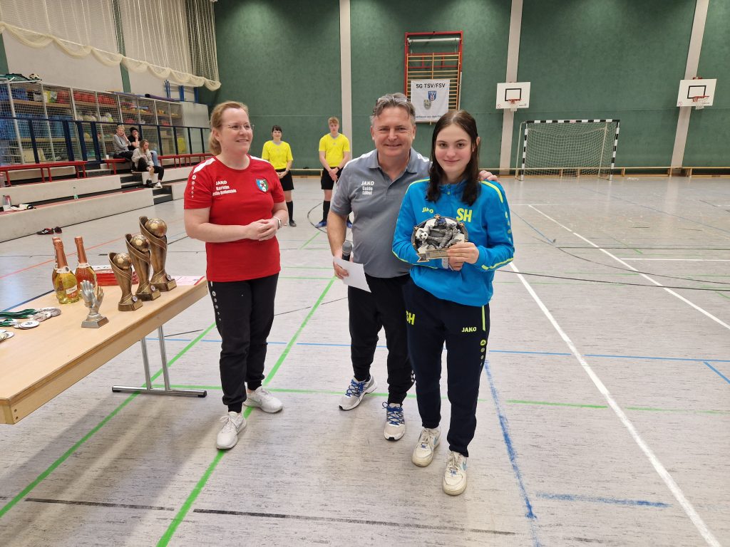 Am Samstag fand die Hallenkreismeisterschaft der Fußballfrauen in Treuenbrietzen statt. Unter den sieben teilnehmenden Mannschaften ging der FSV Viktoria Brandenburg als Titelverteidiger an den Start. Gespielt wurde im Modus jeder gegen jeden. Wie auch in den letzten Turnieren boten die Brandenburgerinnen eine starke Leistung an allen Spielen. Sie waren spielbestimmend in ihren Partien. Leider war die mangelnde Chancenverwertung bei tief stehenden Abwehrreihen und kleinen Handballtoren das Zünglein an der Waage. Am Ende war es ein Remis zu viel. Mit drei Siegen und drei Remis wurden die Havelstädter Dritter hinter den Pokalsiegern SpG Treuenbrietzen/Brück und SV Babelsberg II. Stella Fabienne Hobert wurde mit zwei weiteren Spielerinnen zur „Besten Spielerin“ gewählt. Trainer Andreas Ziehm kann insgesamt für die abgelaufene Hallensaison ein positives Fazit ziehen. In allen vier Hallenturnieren verloren sie kein einziges Spiel, kassierten insgesamt nur drei Gegentore und belegten einmal Platz 1, zweimal Platz 2 und einmal Platz 3. Am 03.03.24 beginnt dann für Viktoria die Rückrunde in der Kreisliga Großfeld.
