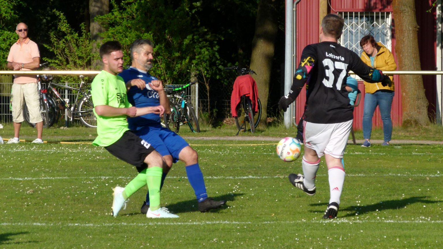 In der zweiten Hälfte sah man sofort, dass sich Loktoria nicht kampflos ergeben möchte. Angetrieben vom Spiel und einem laufstarken Steffen Baumann, drängte man Stahl in die eigene Hälfte. In der 61. Minute hatten die Gastgeber schon den Torjubel auf den Lippen, als Ronny Schulze, allein auf das Tor zulaufend, dann aber doch daneben schob. Nur 1 Minute später fiel der fällige Anschlusstreffer. Erik Glatzer nahm einen Einwurf auf, drehte sich blitzschnell und zog aus 20 Metern unvermittelt ab. Selbst Stahl Torhüter Jan Reinicke war so überrascht, dass er dem Ball nur hinterherschaute, als die Kugel neben ihm einschlug. Die SpG wollte nun mindestens einen Punkt und erhöhte den Druck. Auf der anderen Seite wollte die BSG die sich nun bietenden Räume für Konter nutzen und war dabei brandgefährlich. Neben dem hohen Tempo und den vielen Zweikämpfen sahen die Zuschauer nun auch einige Torchancen. Zunächst verfehlte Sascha Koch mit einem guten Schuss das Gehäuse um wenige Zentimeter. (66.) In der selben Minute ließ der pfeilschnelle Stahl-Akteur Malte Roitzsch sämtliche Loktoriaspieler im Laufduell stehen, stand dann allein vor Alex Ziem, traf aber aus spitzem Winkel nur den Außenpfosten. Fünf Minuten später konterte Stahl erneut. Diesmal setzte sich Florian Dittert auf der linken Seite durch und zwang Alex Ziem zu einer Glanztat, der den Ball zur Ecke lenken konnte. In der Schlussviertelstunde rannte die SpG an. Der Ausgleich lag in der Luft. In der 77. Minute konnte Jan Reinicke einen Freistoß mit einem tollen Reflex um den Pfosten lenken. Eine Minute später schoss Ronny Schulze aus 20 Meter über den weit vor dem Tor stehenden Torwart. Der Ball ging aber auch knapp über das leere Tor. Vier Minuten vor dem Ende gelang Loktoria der hochverdiente Ausgleich. Steffen Baumann bediente Erik Glatzer, der aus spitzem Winkel das 3:3 erzielte. Nur eine Minute später hätte Jeremy Siegel sogar das 4:3 erzielen können. Er setzte sich energisch durch, bis er allein vor dem BSG Torwart auftauchte, den aber nicht überwinden konnte. Stattdessen hätten die Gäste in der 89. Minute das 4:3 erzielen müssen. Eine zu kurze Kopfballrückgabe von Enrico Krause landete an den Füßen von Benito de Cesco, der allein Vor Alex Ziem stand, sich die Ecke aussuchen konnte, aber den Ball völlig überhastet weit über den Kasten schoss. Danach war dann Schluss. Die vielen Zuschauer applaudierten beiden Mannschaften, die rassiges, temporeiches und hochklassiges Derby ablieferten und sich unterm Strich mit einem gerechten Unentschieden trennten.