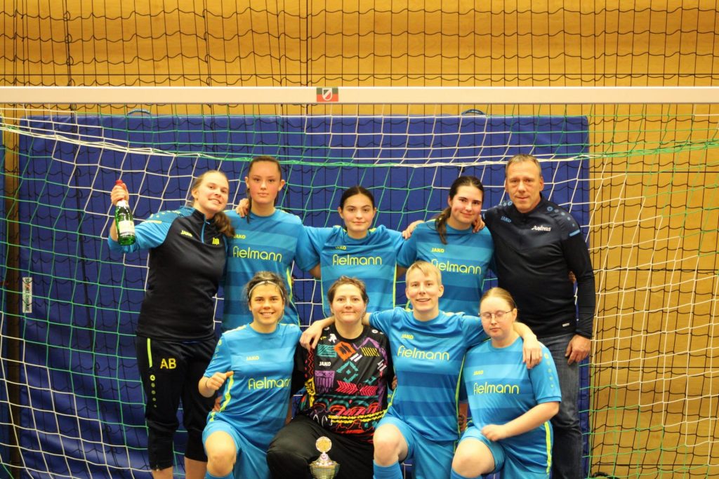 Am Samstag, 06.01.24 waren die Fußballfrauen des FSV Viktoria Brandenburg zu ihrem ersten Hallenturnier in dieser Saison zu Gast bei Eintracht Bötzow. Acht Mannschaften waren am Start. Gespielt wurde in zwei Staffeln. Im ersten Spiel für Viktoria ging es gegen die Heimmannschaft. Die Brandenburgerinnen fanden schnell ins Spiel und gewannen souverän mit 3:0. Auch im zweiten Spiel gegen Alt-Ruppin siegten sie klar mit 5:1. Im letzten Vorrundenspiel gegen Viktoria Mitte reichte ein torloses Remis zum Gruppensieg. Im Halbfinale hieß der Gegner Wachow/Tremmen. Mit einem 2:0 Sieg ging es dann ins Finale gegen die Falkenthaler Füchse. Hier wurde es dann spannend. Viktoria ging mit 2:0 in Führung. Die Füchse glichen aber noch aus. So kam es zum 9-Meter schießen. Trainer Andreas Ziehm hatte bei der Wahl der Schützinnen ein gutes Händchen. Der FSV Viktoria siegte am Ende mit 6:5 und startete damit erfolgreich in die Hallensaison. Die Havelstädter zeigten über das gesamte Turnier eine strake Leistung und belohnten sich am Ende verdient mit dem Pokalsieg. Marie-Sophie Dake wurde ins Allstarteam gewählt. FSV: Susanne Schlothauer, Marie Sophie Dake, Stella-Fabienne Hobert, Jessica Bothe, Emilia Strauß, Stella Markert, Lilly-Marlen Zander, Anja Bothe (Fotografin)
