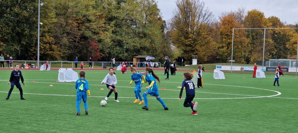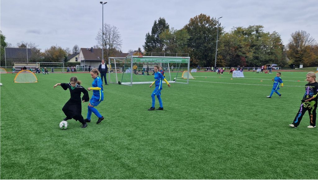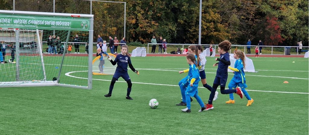 Am 31.10.2024 folgten die Jüngsten der Viktoria-Mädels mit einem Team der Einladung des SV Grün-Weiß Brieselang zum diesjährigen Halloweenturnier. 16 Mannschaften in den Altersklassen F- und E-Juniorinnen gingen an den Start. Gespielt wurden 6 Spiele je 10 Minuten mit 3 Minuten Pause zwischen den Spielen. Im Vordergrund stand der Spaß am Spielen. Die Spielerinnen waren teilweise verkleidet bzw. geschminkt. Bei den Viktoria-Girls ging es in erster Linie darum, Erfahrungen zu sammeln, da sie in dieser Konstellation so auch noch nicht zusammengespielt hatten und es für zwei Spielerinnen das erste Turnier überhaupt war. Das Trainerteam Carolin Fronz/Andreas Ziehm zeigte sich mit dem Einsatz der Mädels sehr zu frieden. Am Turnierende waren alle erschöpft aber glücklich.